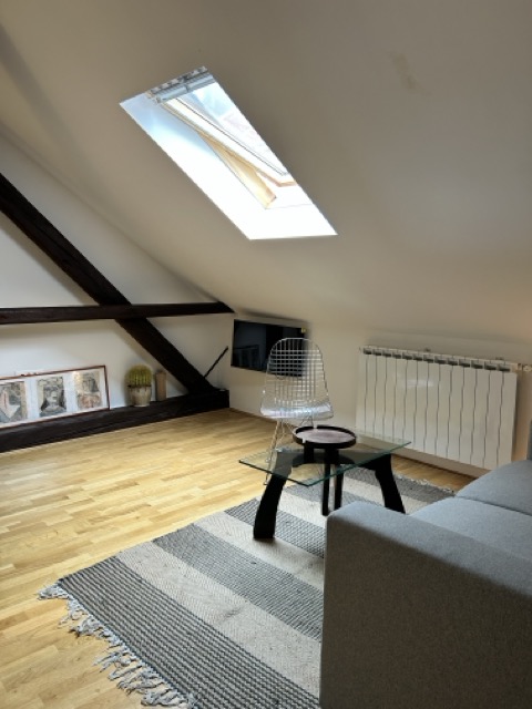 Iznajmljuje se dvosoban stan površine 44 m² u potkrovlju zgrade na odličnoj lokaciji, u blizini Trga Franje Tuđmana.